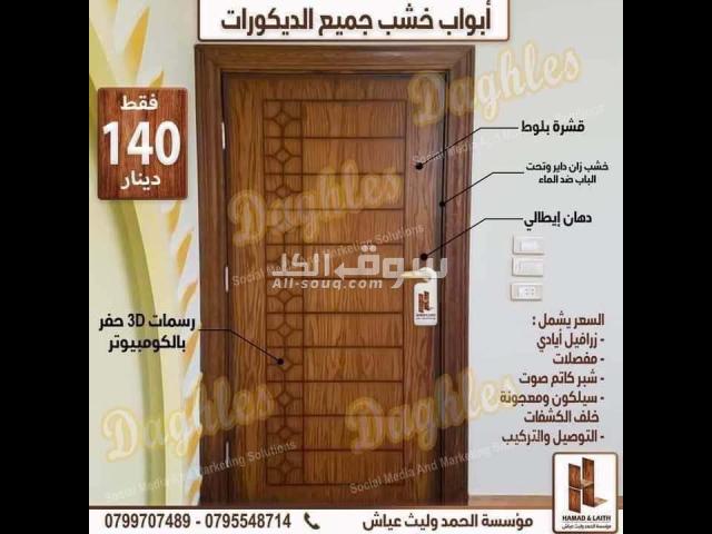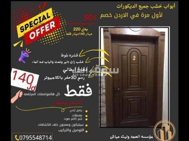 عرض نار 🔥 عرض نار لا اول مره في الاردن بي خصم 50/100 ابواب خشب مطابخ غرف نوم جميع لديكورات