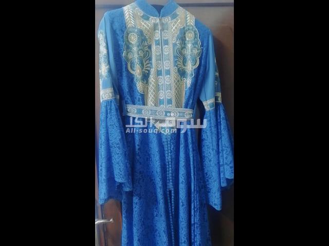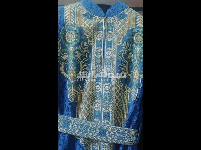 قفطان دانتيل حريم السلطان لون ازرق وذهبي قطعتين القطعه الداخليه كُم ممكن يتلبس مع حجاب ملبوس مره واحده فقط بحال الجديد راقي كتير ع اللبس مقاس xl للبيع بنصف السعر